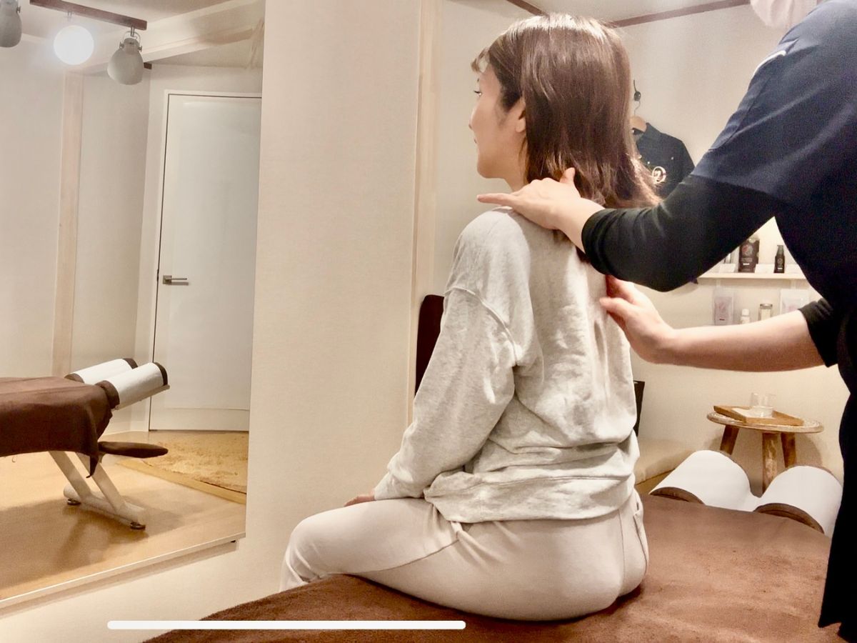 ラクスマイルの骨格矯正では、固まった筋肉をゆるめ、骨を正しい位置に戻していきます。